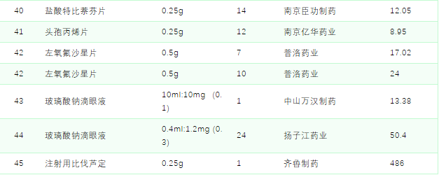 第四批国家组织药品集中采购贵州省中选后供应品种清单: